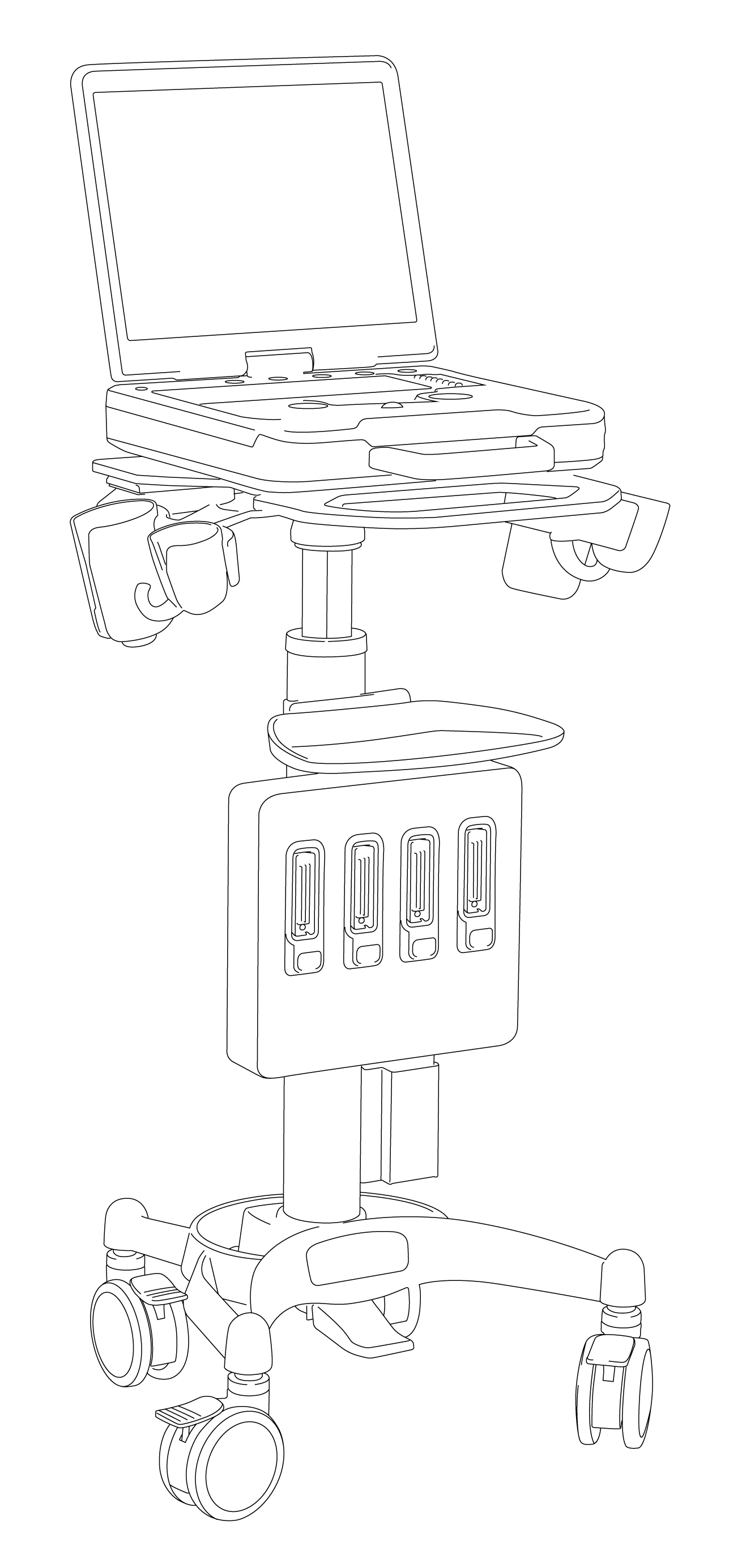 Хранение: встроенные держатели и полочки для удобного размещения датчиков и необходимых принадлежностей, организации рабочего пространства врача
