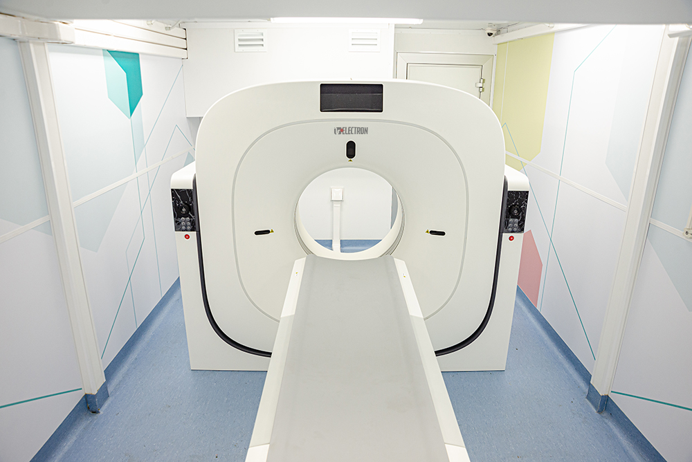 The computed tomography system 64-slice (CT) installed in the module unit is equipped with a wide set of specialized software applications for diagnostic imaging in patients with respiratory disorders, vascular abnormalities, cancer, as well as for assessment of cerebral, renal, and hepatic blood supply. Thanks to this, CT is in high demand not only during the COVID-19 pandemic.