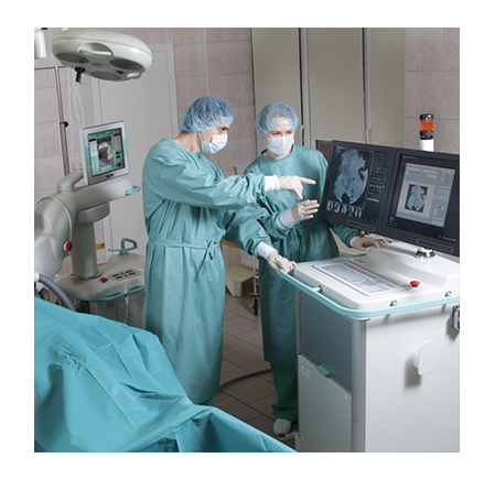 The high image quality provided by mobile C-arm systems is achieved due to a digital imaging system, which allows seeing even the smallest defects and pathologies. A mobile C-arm system model with a flat panel detector provides for imaging of even the smallest vessels. The modes of pulsed fluoroscopy, lowered dose fluoroscopy, and special quality fluoroscopy in combination with the wide APR program range, which considers the patient’s age and the body build, allows obtaining a high-quality image with the minimum exposure dose.